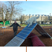 Der Hundeträff ist gut ausgestattet mit diversen Agility-Geräten, u.a. div. Sprünge, Steg, Wippe,